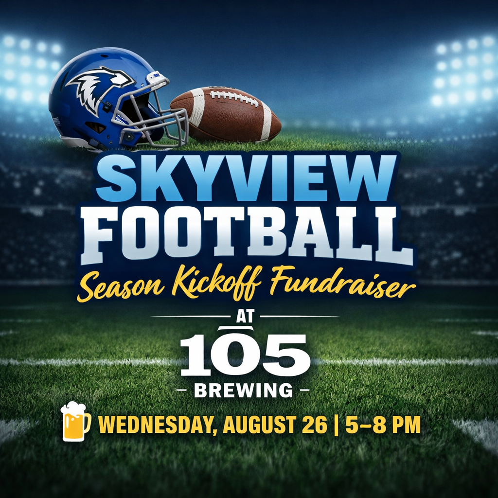 Join us for the Skyview Football Season Kickoff Fundraiser at 1Ō5 Brewing on Wednesday, August 26, 2026, from 5 PM to 8 PM.